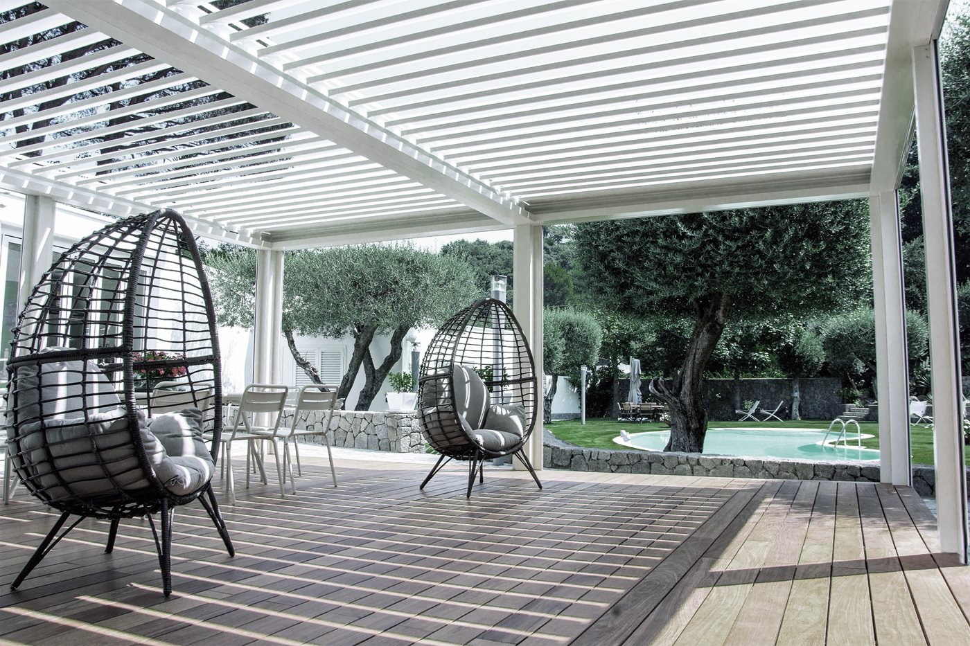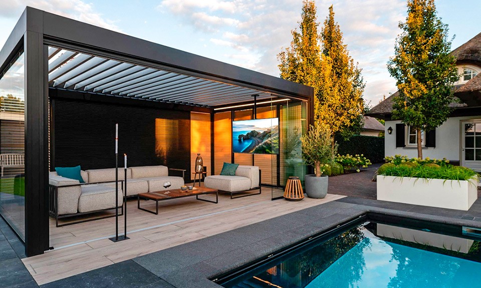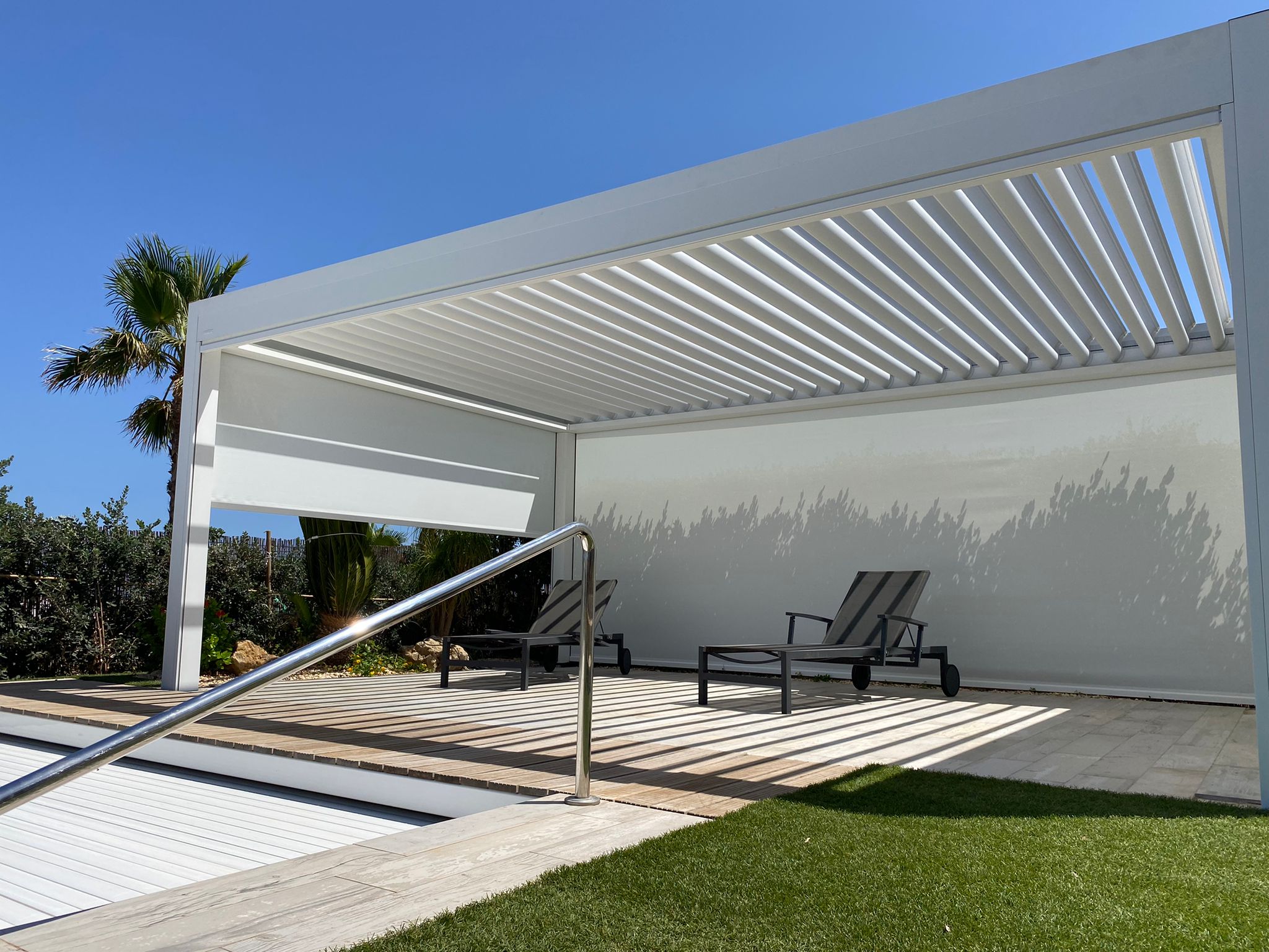 Las Pérgolas Bioclimáticas Lumos son un producto especialmente diseñado para el exterior, su diseño realza cualquier jardín o terraza aportando la protección solar necesaria para utilizarla durante todo el año. Su accionamiento puede ser de forma manual o motorizada.