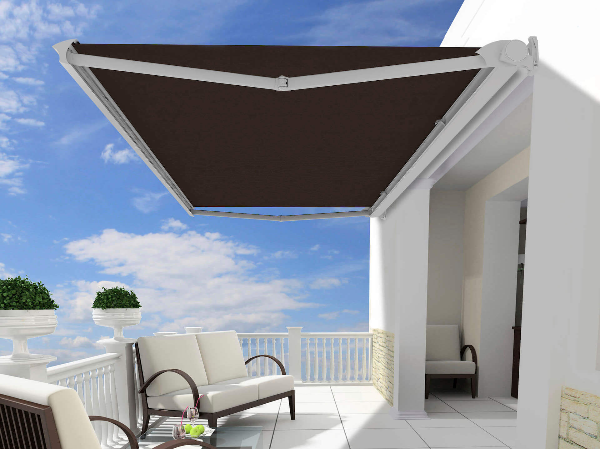 En Lumos fabricamos toldos de hasta 6 metros de ancho con una extensión de 3,5 mts en más de 20 telas diferentes.