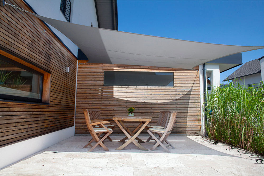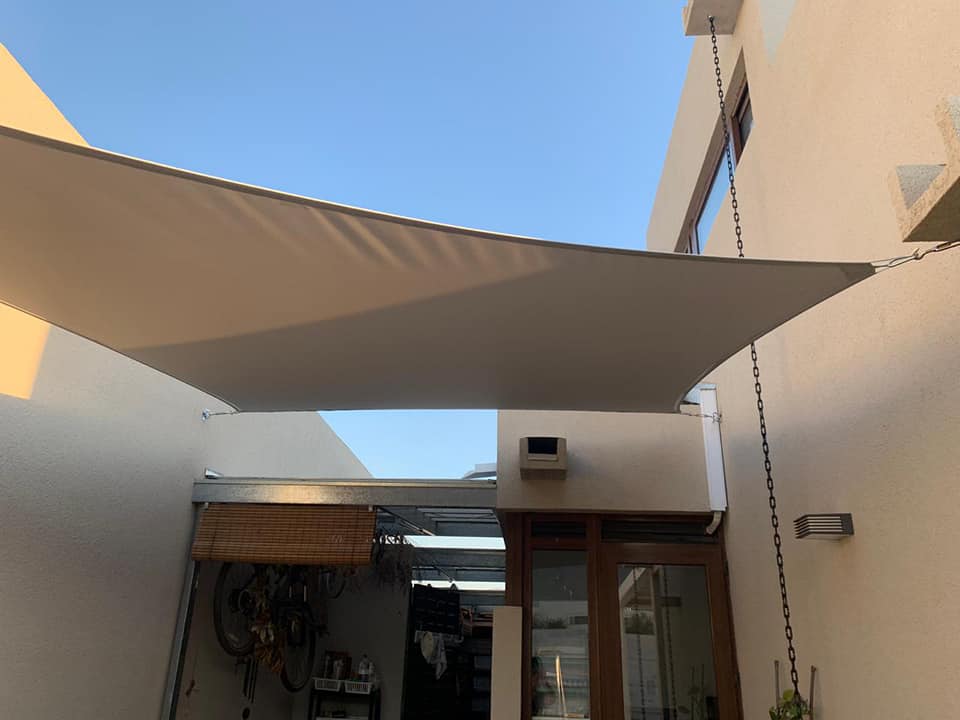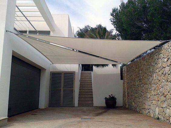 Este tipo de Toldo se componen de una lona con tensores y grilletes de acero inoxidable que regulan la tensión de la tela y pueden anclarse directamente a paredes, muros o bien sujetarse mediante mástiles o postes.