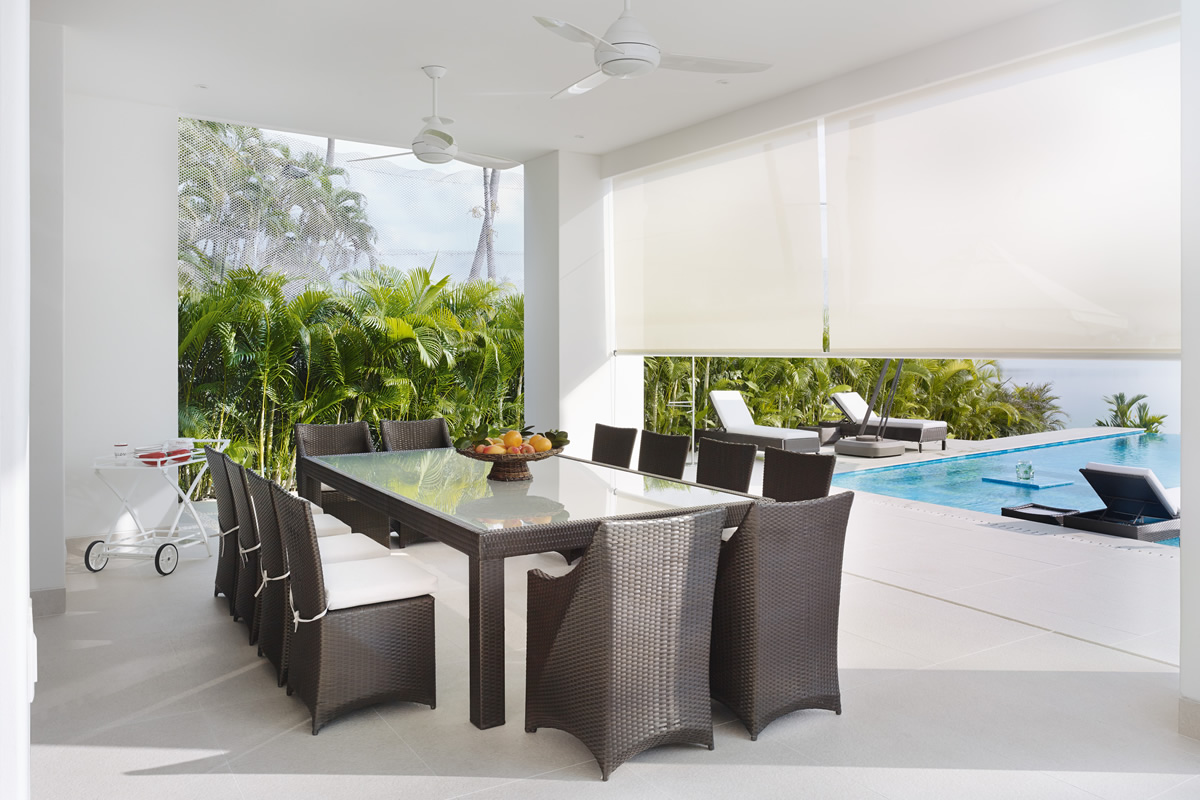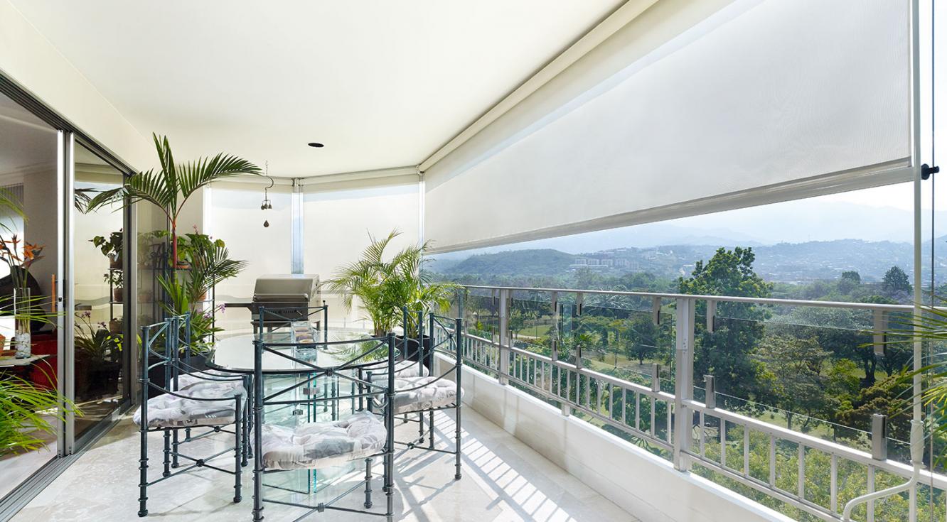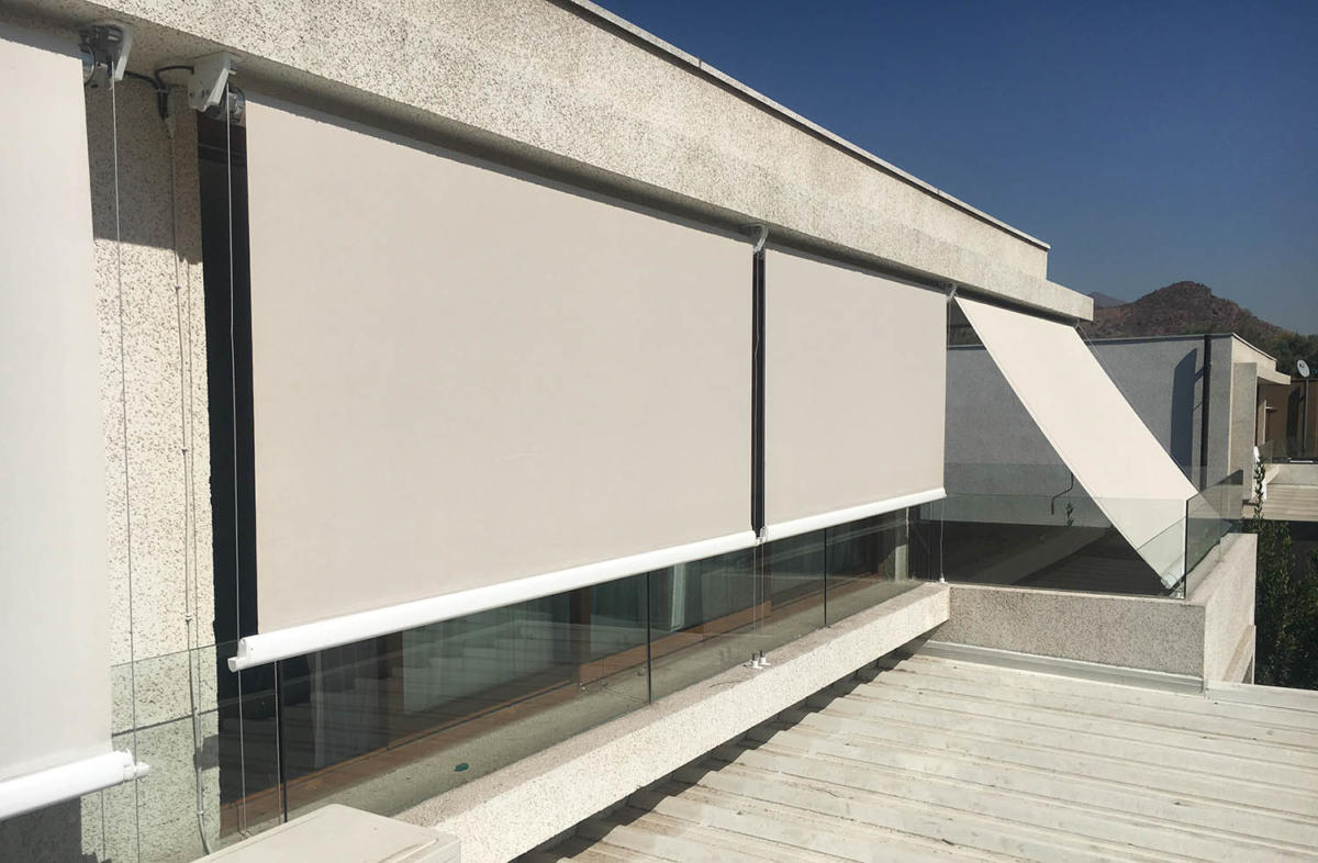 Los Toldos Verticales Lumos ofrecen dos tipos de accionamiento: manual, por medio de una manivela, o motorizado. Su instalación consiste en dos piolas ancladas a la terraza y van a cada extremo de la cortina, lo que evita el efecto vela.